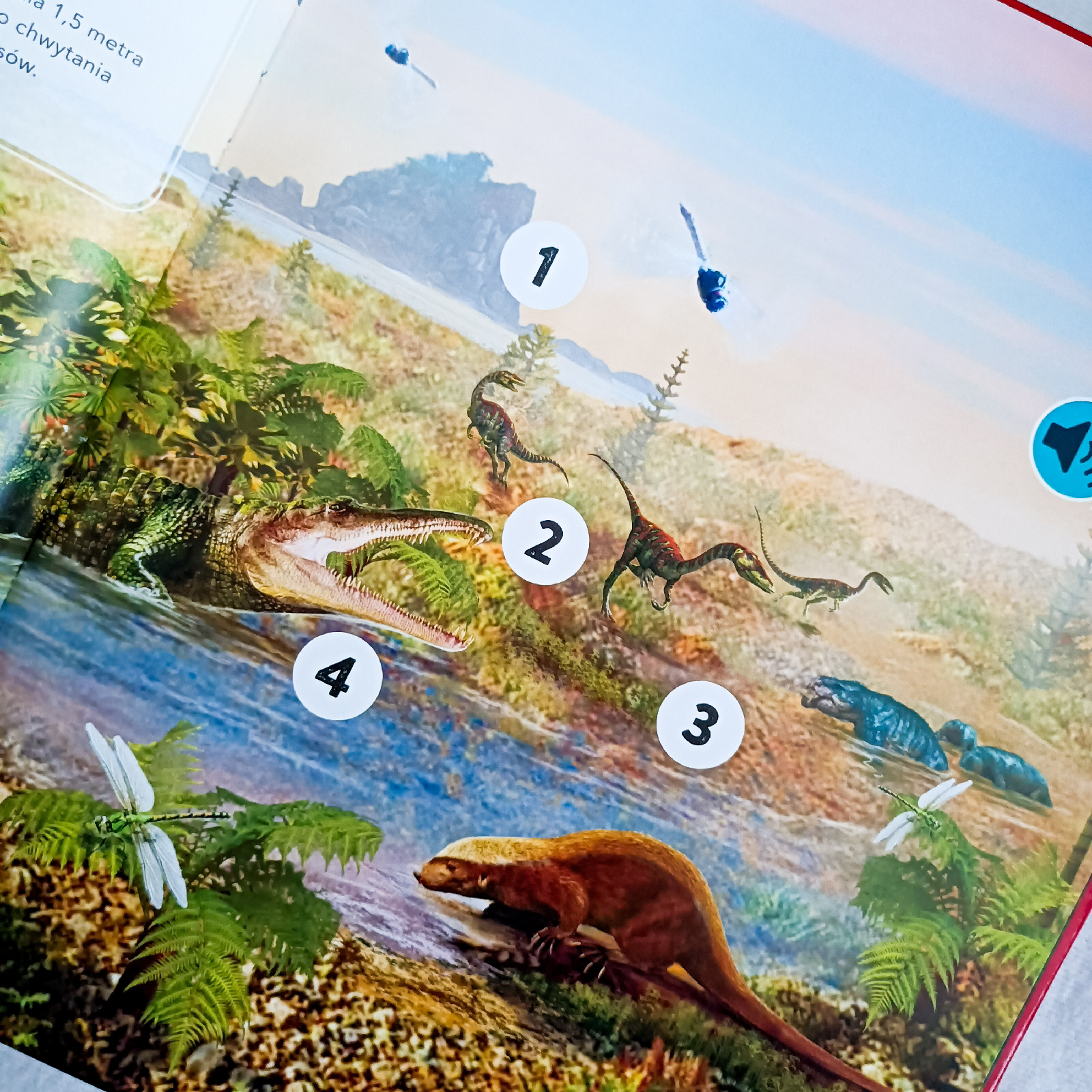 Każda strona to inna sceneria dźwiękowa. Szum drzew i śpiew ptaków otwierają zmysły, pociągając w głąb prehistorycznych lasów. Tuż obok, w oddali, słychać szelest traw, a w tle subtelne dźwięki wydawane przez dinozaury – to jak koncert natury sprzed milionów lat. Lecz nie tylko kojąca melodia natury otacza czytelnika, to także potężne, drżące wibracje, jakie wydawane są przez prehistoryczne giganty. Ich ryki wstrząsają kartami, wywołując dreszcze na skórze. To interaktywna podróż dźwiękowa, która pobudza zmysły i ciekawość, jakiej nie doznaliśmy nigdy wcześniej.